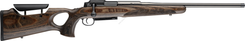 Wariant nastawiony na ergonomię i stabilność podczas precyzyjnego strzelania. Laminowana osada z otworem na kciuk i regulowaną baką zwiększa kontrolę i komfort użytkowania.